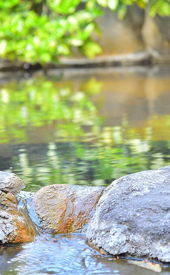 温泉の香り、流れる音、そして舞い踊る湯の華と一緒に湯あみを。